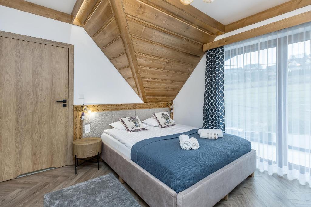 Obiekt może komfortowo pomieścić do 11 osób i oferuje kilka wygodnych sypialni z prywatnymi łazienkami, co zapewnia wysoki poziom komfortu oraz prywatność podczas pobytu. Jasne wnętrza oraz duże przeszklenia podkreślają górski klimat, a z okien rozciągają się malownicze widoki na otaczającą naturę. W pełni wyposażona kuchnia oraz przytulna część wspólna sprzyjają wspólnemu gotowaniu i spędzaniu czasu w gronie bliskich. To idealne miejsce, by połączyć relaks, wygodę i bliskość natury w spokojnej, górskiej scenerii.